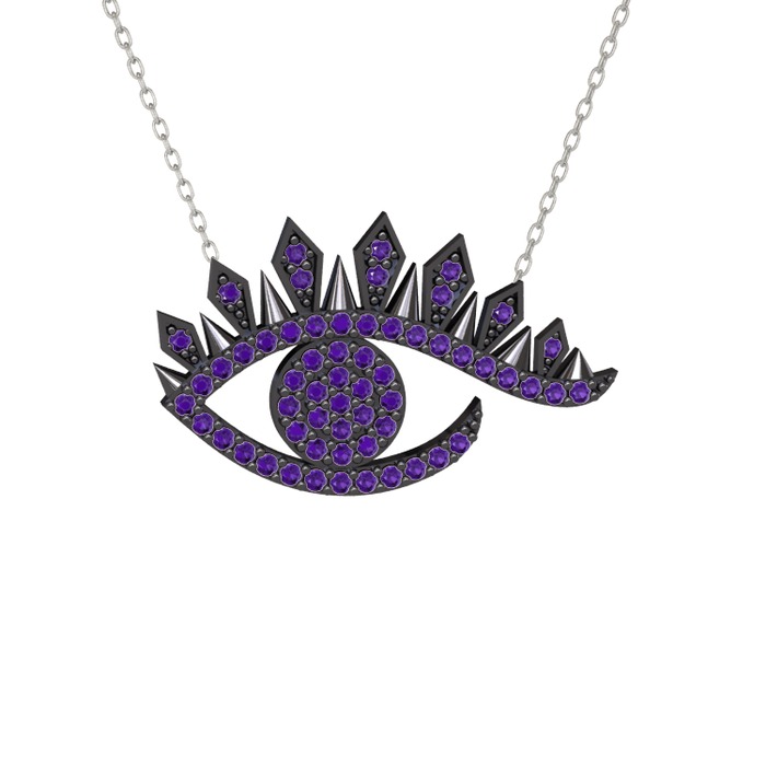 Ametist 925 ayar siyah rodyum kaplama gümüş kolye (40 cm gümüş rolo zincir)