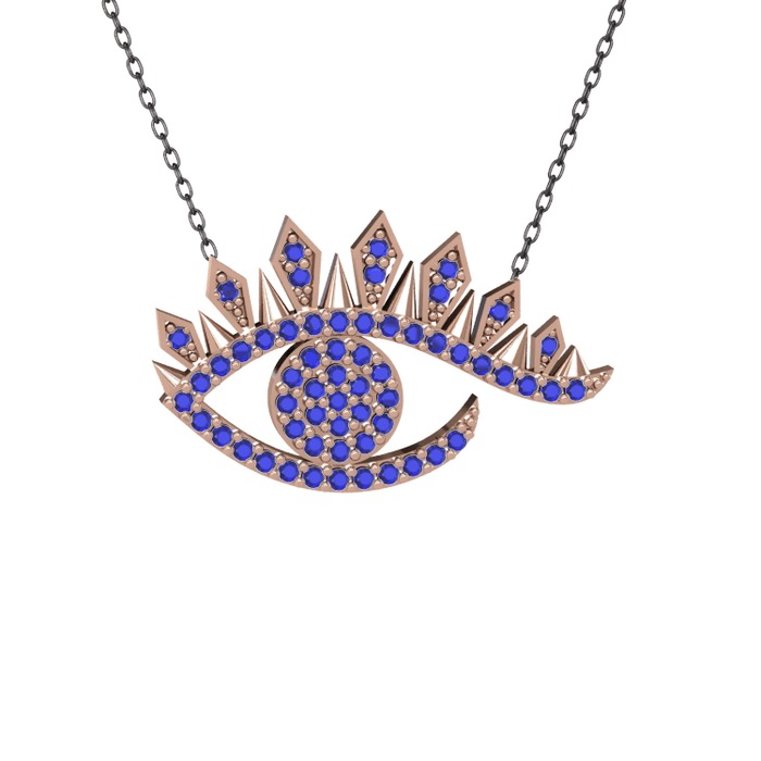 Lab safir 14 ayar rose altın kolye (40 cm gümüş rolo zincir)