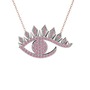 Pembe kuvars 18 ayar beyaz altın kolye (40 cm rose altın rolo zincir)