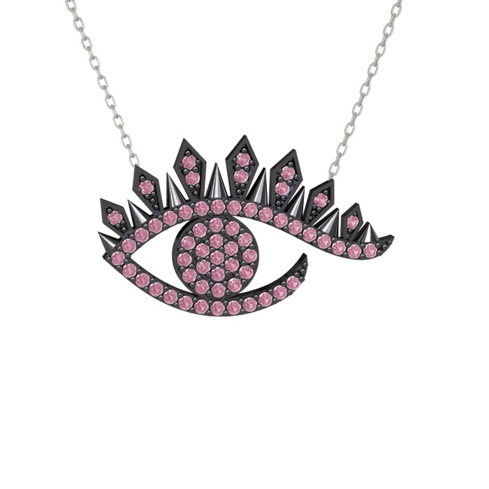 Pembe kuvars 925 ayar siyah rodyum kaplama gümüş kolye (40 cm beyaz altın rolo zincir)