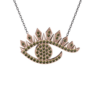 Peridot 14 ayar rose altın kolye (40 cm gümüş rolo zincir)