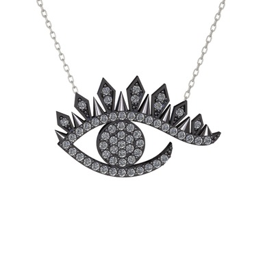 Ezra Göz Kolye - Pırlanta 925 ayar siyah rodyum kaplama gümüş kolye (0.1672 karat, 40 cm gümüş rolo zincir)