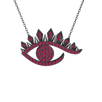 Rodolit garnet 925 ayar siyah rodyum kaplama gümüş kolye (40 cm gümüş rolo zincir)