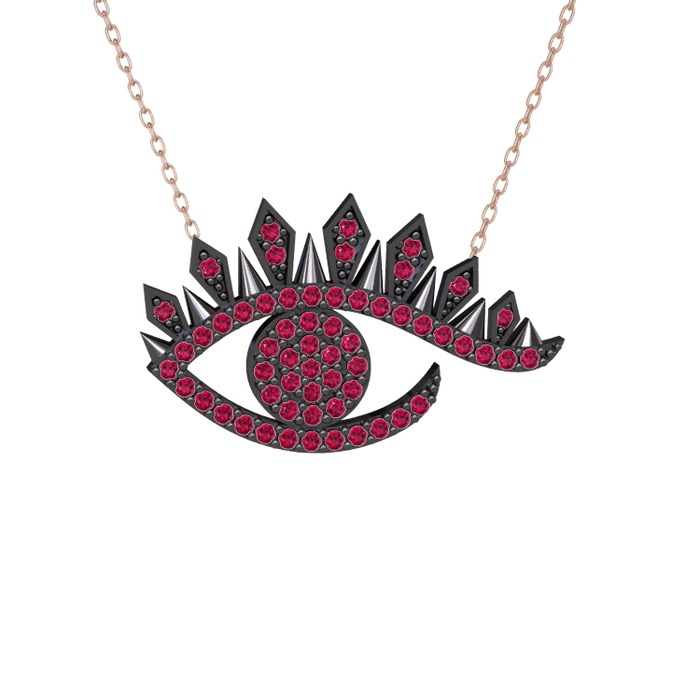 Rodolit garnet 925 ayar siyah rodyum kaplama gümüş kolye (40 cm gümüş rolo zincir)