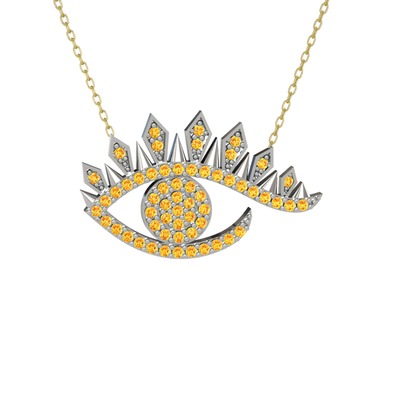 Sitrin 925 ayar gümüş kolye (40 cm altın rolo zincir)