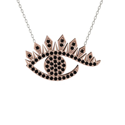 Siyah zirkon 8 ayar rose altın kolye (40 cm beyaz altın rolo zincir)