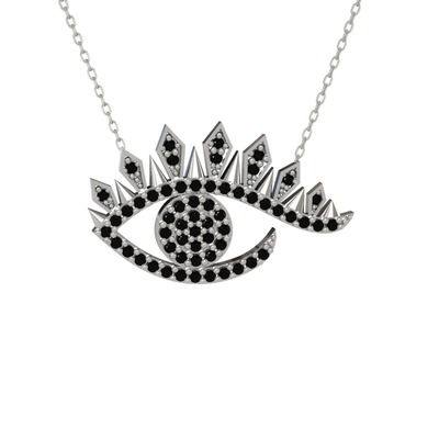 Siyah zirkon 925 ayar gümüş kolye (40 cm gümüş rolo zincir)