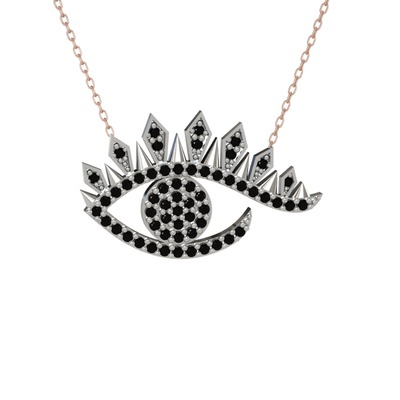 Siyah zirkon 925 ayar gümüş kolye (40 cm rose altın rolo zincir)
