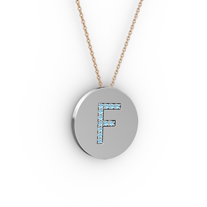 Akuamarin 14 ayar beyaz altın kolye (40 cm gümüş rolo zincir)