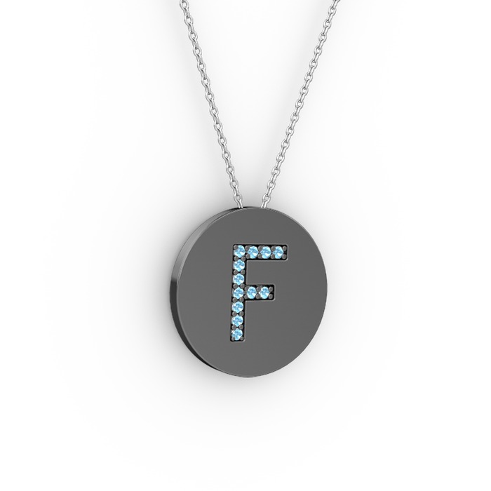 Akuamarin 925 ayar siyah rodyum kaplama gümüş kolye (40 cm beyaz altın rolo zincir)