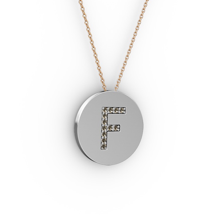 Dumanlı kuvars 18 ayar beyaz altın kolye (40 cm rose altın rolo zincir)