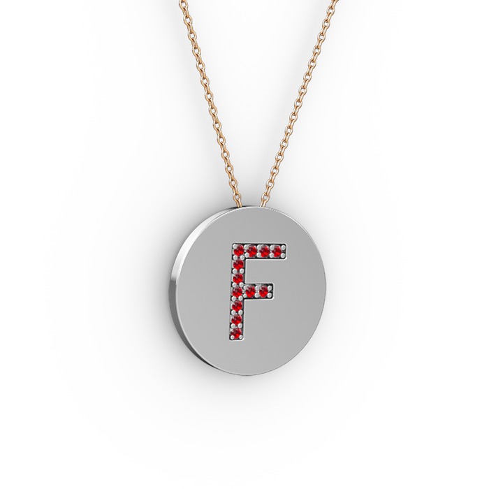 Garnet 14 ayar beyaz altın kolye (40 cm rose altın rolo zincir)