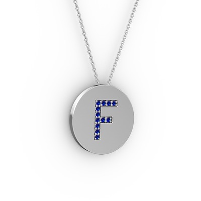 Lab safir 18 ayar beyaz altın kolye (40 cm beyaz altın rolo zincir)