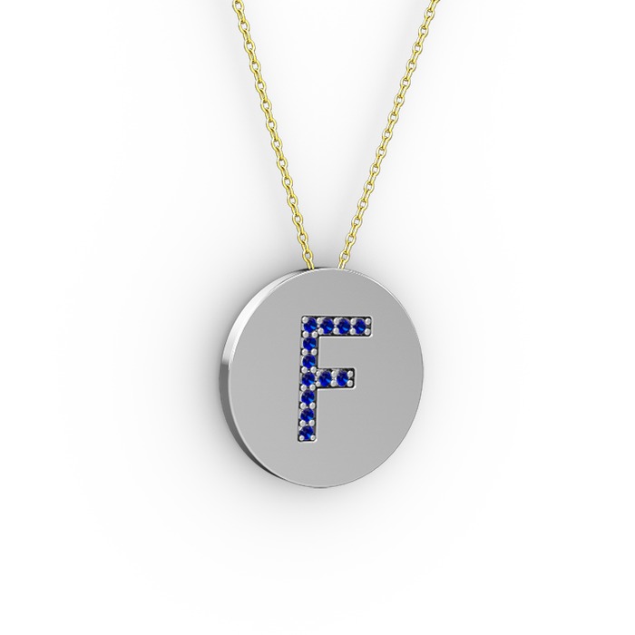 Lab safir 18 ayar beyaz altın kolye (40 cm gümüş rolo zincir)