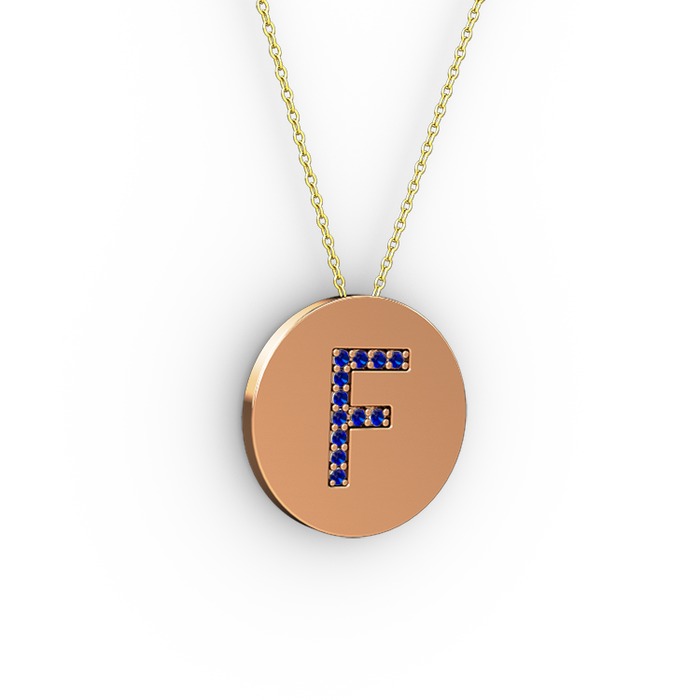 Lab safir 8 ayar rose altın kolye (40 cm altın rolo zincir)