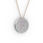 Pembe kuvars 14 ayar beyaz altın kolye (40 cm gümüş rolo zincir)