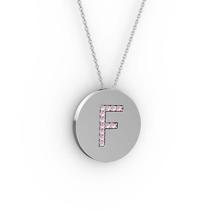 Pembe kuvars 8 ayar beyaz altın kolye (40 cm beyaz altın rolo zincir)