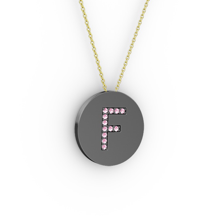Pembe kuvars 925 ayar siyah rodyum kaplama gümüş kolye (40 cm altın rolo zincir)