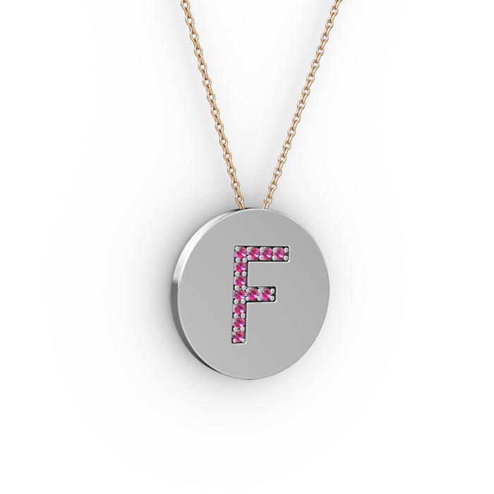 Rodolit garnet 14 ayar beyaz altın kolye (40 cm rose altın rolo zincir)