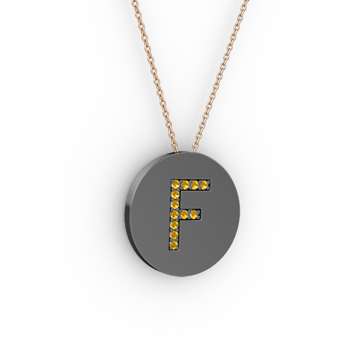 Sitrin 925 ayar siyah rodyum kaplama gümüş kolye (40 cm rose altın rolo zincir)