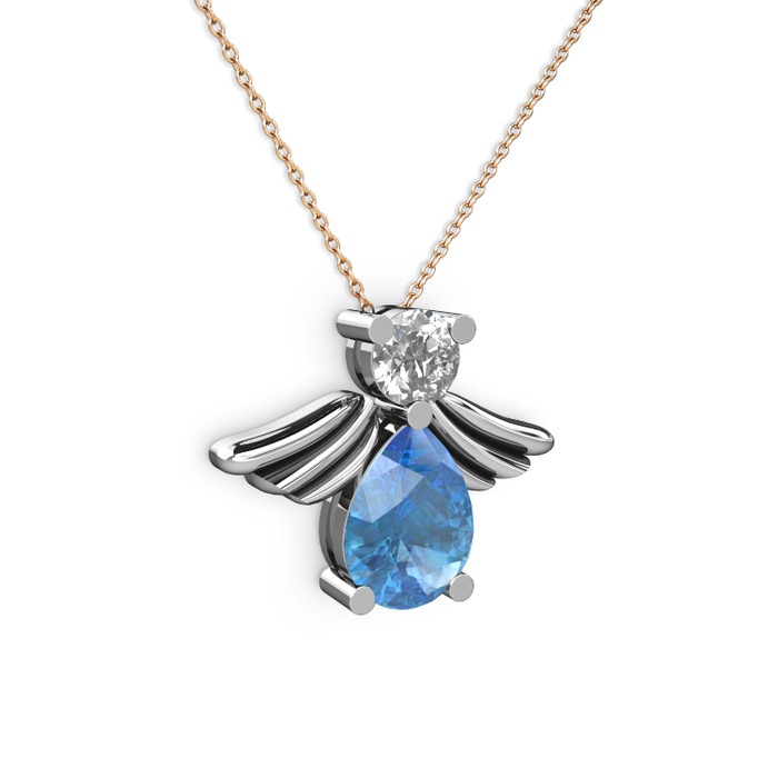 Akuamarin ve beyaz zirkon 8 ayar beyaz altın kolye (40 cm rose altın rolo zincir)
