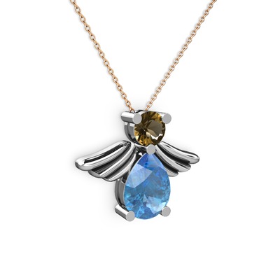 Akuamarin ve dumanlı kuvars 925 ayar gümüş kolye (40 cm gümüş rolo zincir)