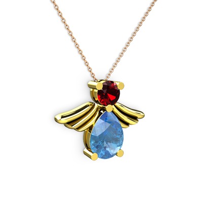 Akuamarin ve garnet 8 ayar altın kolye (40 cm rose altın rolo zincir)