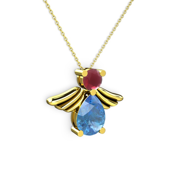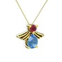 Akuamarin ve kök yakut 14 ayar altın kolye (40 cm gümüş rolo zincir)