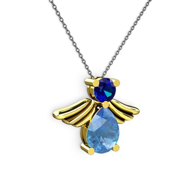 Akuamarin ve lab safir 8 ayar altın kolye (40 cm gümüş rolo zincir)
