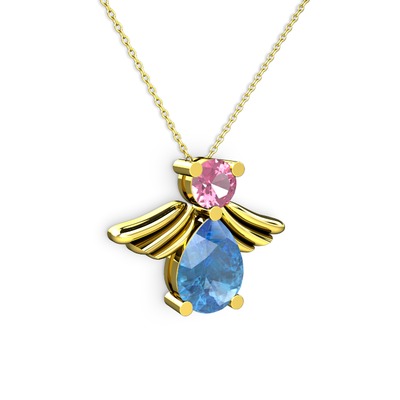 Akuamarin ve pembe kuvars 925 ayar altın kaplama gümüş kolye (40 cm altın rolo zincir)