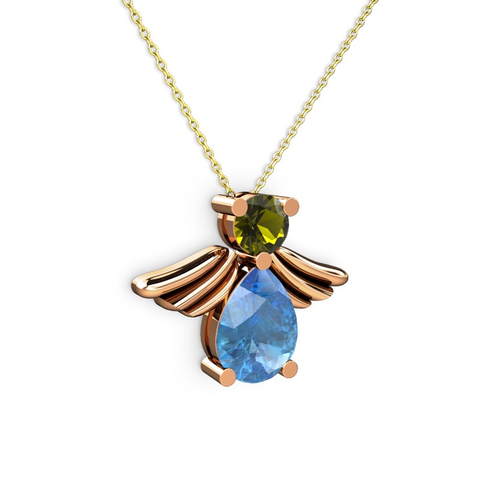 Akuamarin ve peridot 18 ayar rose altın kolye (40 cm altın rolo zincir)