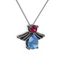 Akuamarin ve rodolit garnet 925 ayar siyah rodyum kaplama gümüş kolye (40 cm gümüş rolo zincir)