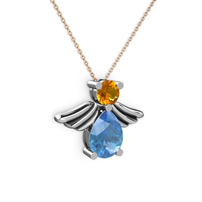 Akuamarin ve sitrin 14 ayar beyaz altın kolye (40 cm gümüş rolo zincir)