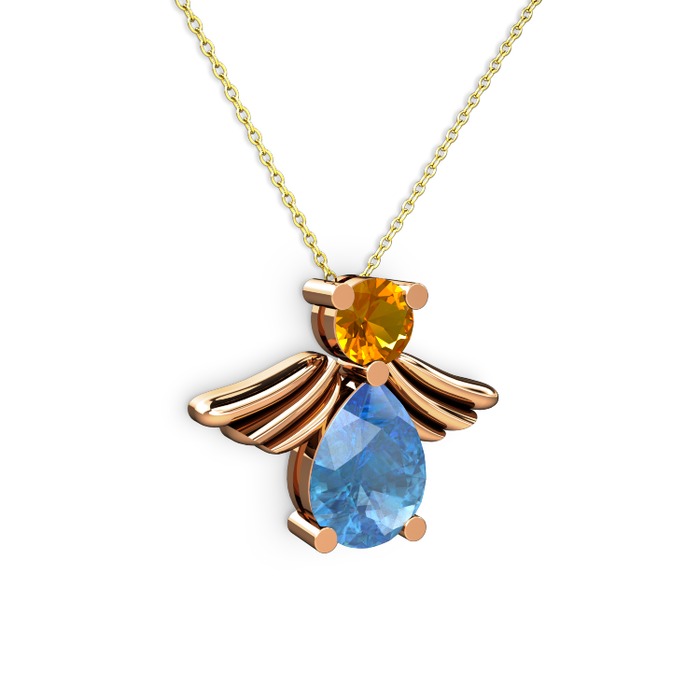 Akuamarin ve sitrin 18 ayar rose altın kolye (40 cm gümüş rolo zincir)