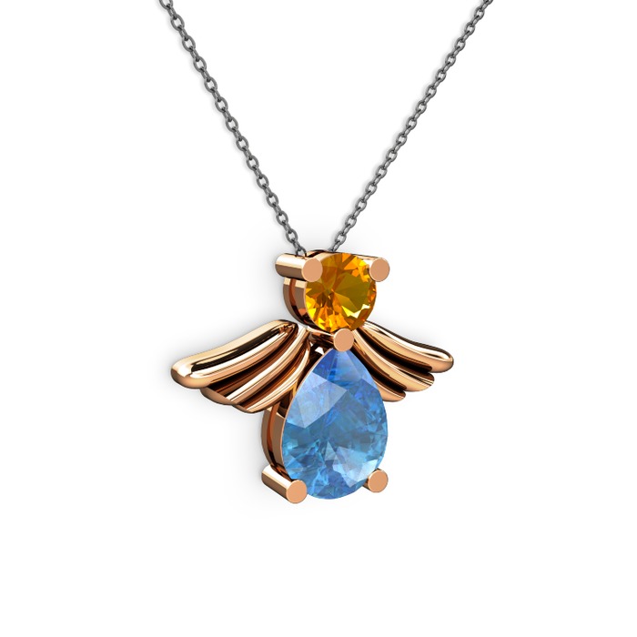 Akuamarin ve sitrin 18 ayar rose altın kolye (40 cm gümüş rolo zincir)