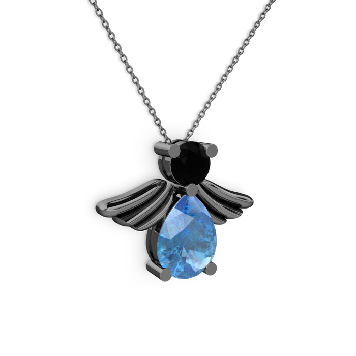 Akuamarin ve siyah zirkon 925 ayar siyah rodyum kaplama gümüş kolye (40 cm gümüş rolo zincir)
