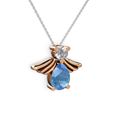 Akuamarin ve swarovski 18 ayar rose altın kolye (40 cm beyaz altın rolo zincir)
