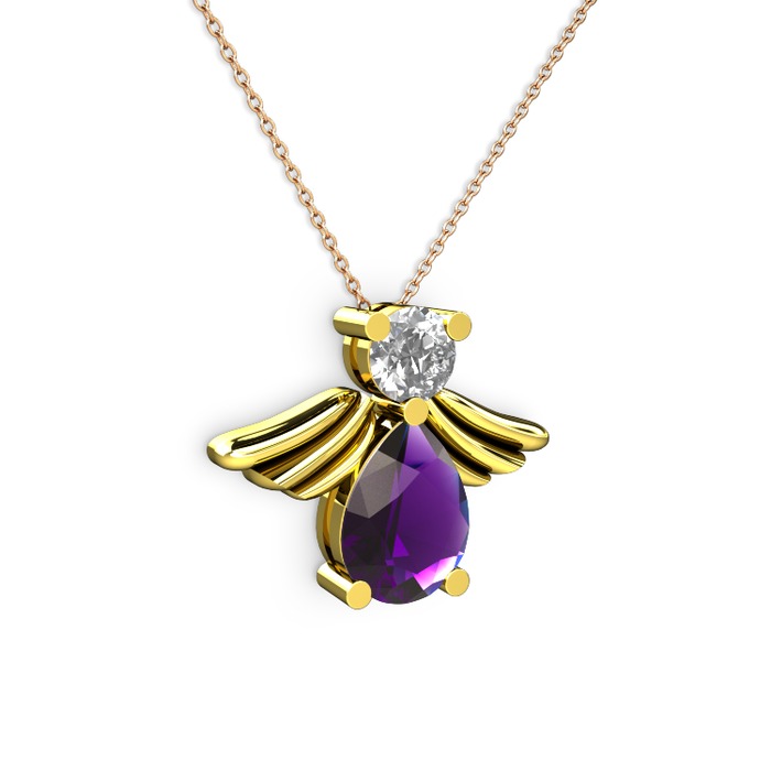 Ametist ve beyaz zirkon 8 ayar altın kolye (40 cm rose altın rolo zincir)