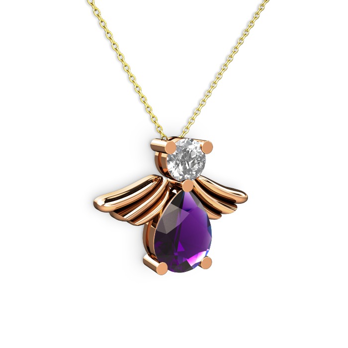 Ametist ve beyaz zirkon 925 ayar rose altın kaplama gümüş kolye (40 cm gümüş rolo zincir)