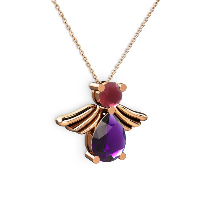 Ametist ve kök yakut 8 ayar rose altın kolye (40 cm gümüş rolo zincir)