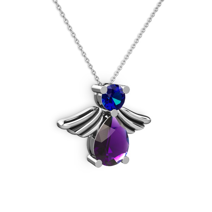 Ametist ve lab safir 925 ayar gümüş kolye (40 cm beyaz altın rolo zincir)
