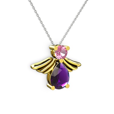 Ametist ve pembe kuvars 8 ayar altın kolye (40 cm beyaz altın rolo zincir)