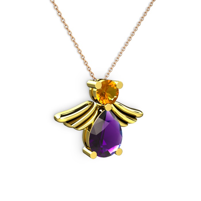 Ametist ve sitrin 14 ayar altın kolye (40 cm rose altın rolo zincir)