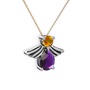 Ametist ve sitrin 8 ayar beyaz altın kolye (40 cm rose altın rolo zincir)