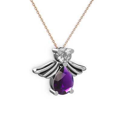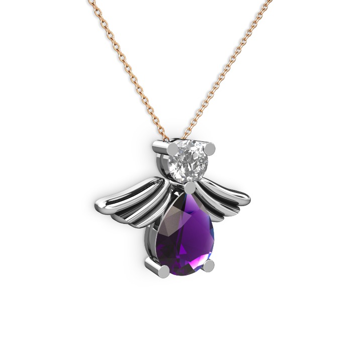 Ametist ve swarovski 8 ayar beyaz altın kolye (40 cm rose altın rolo zincir)