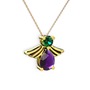 Ametist ve yeşil kuvars 18 ayar altın kolye (40 cm rose altın rolo zincir)