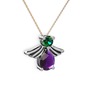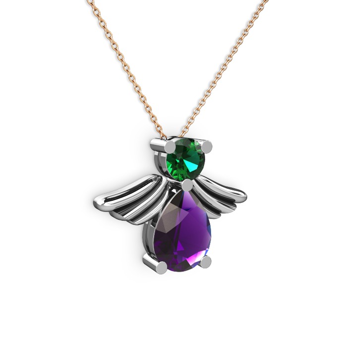 Ametist ve yeşil kuvars 18 ayar beyaz altın kolye (40 cm rose altın rolo zincir)