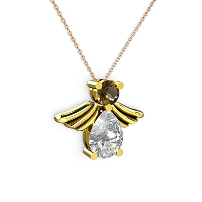 Beyaz zirkon ve dumanlı kuvars 8 ayar altın kolye (40 cm rose altın rolo zincir)