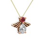Beyaz zirkon ve kök yakut 18 ayar rose altın kolye (40 cm altın rolo zincir)