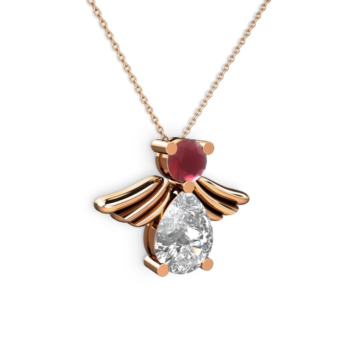 Beyaz zirkon ve kök yakut 925 ayar rose altın kaplama gümüş kolye (40 cm rose altın rolo zincir)
